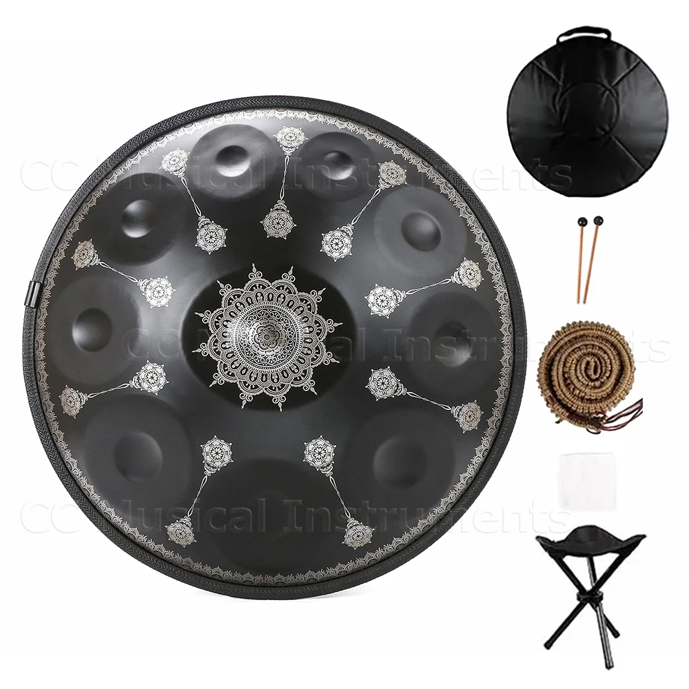 22-Zoll-Handpan 10-Ton-Profi-Handpan-Trommel Meditation Stahltrommeln mit Taschenhalter Handgefertig...
