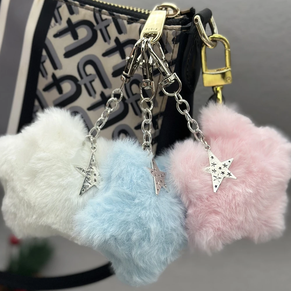 3 Colors Fluffy Plush Star Charms Keychain Y2K Faux Rabbit Fur Pomp...