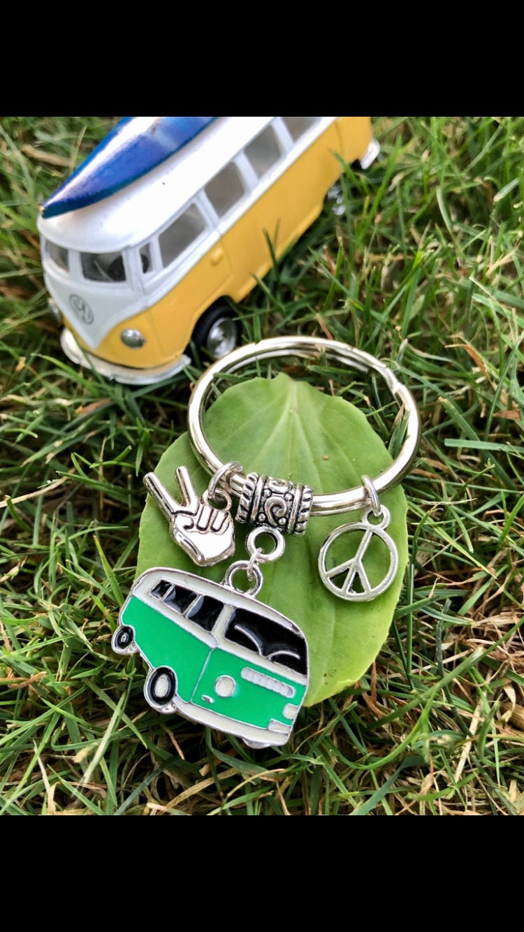 VW Bus Schlüsselanhänger mit Peace Zeichen Kleide deine Schlüssel ein! Die 70er sind ...