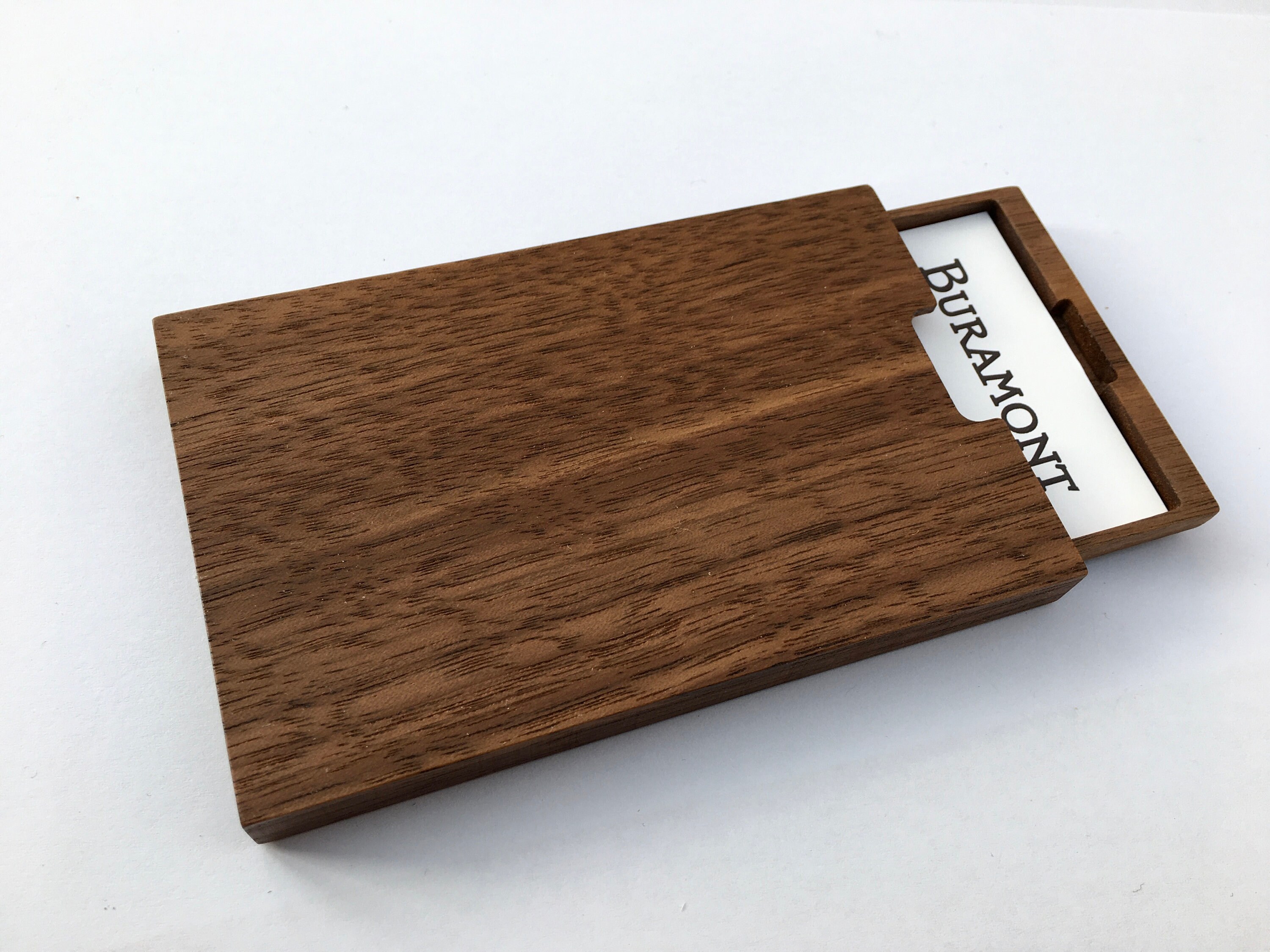 "Unsere Visitenkartenetuis aus Nussbaumholz vereinen schlichte Eleganz mit feiner Handwerkskuns...