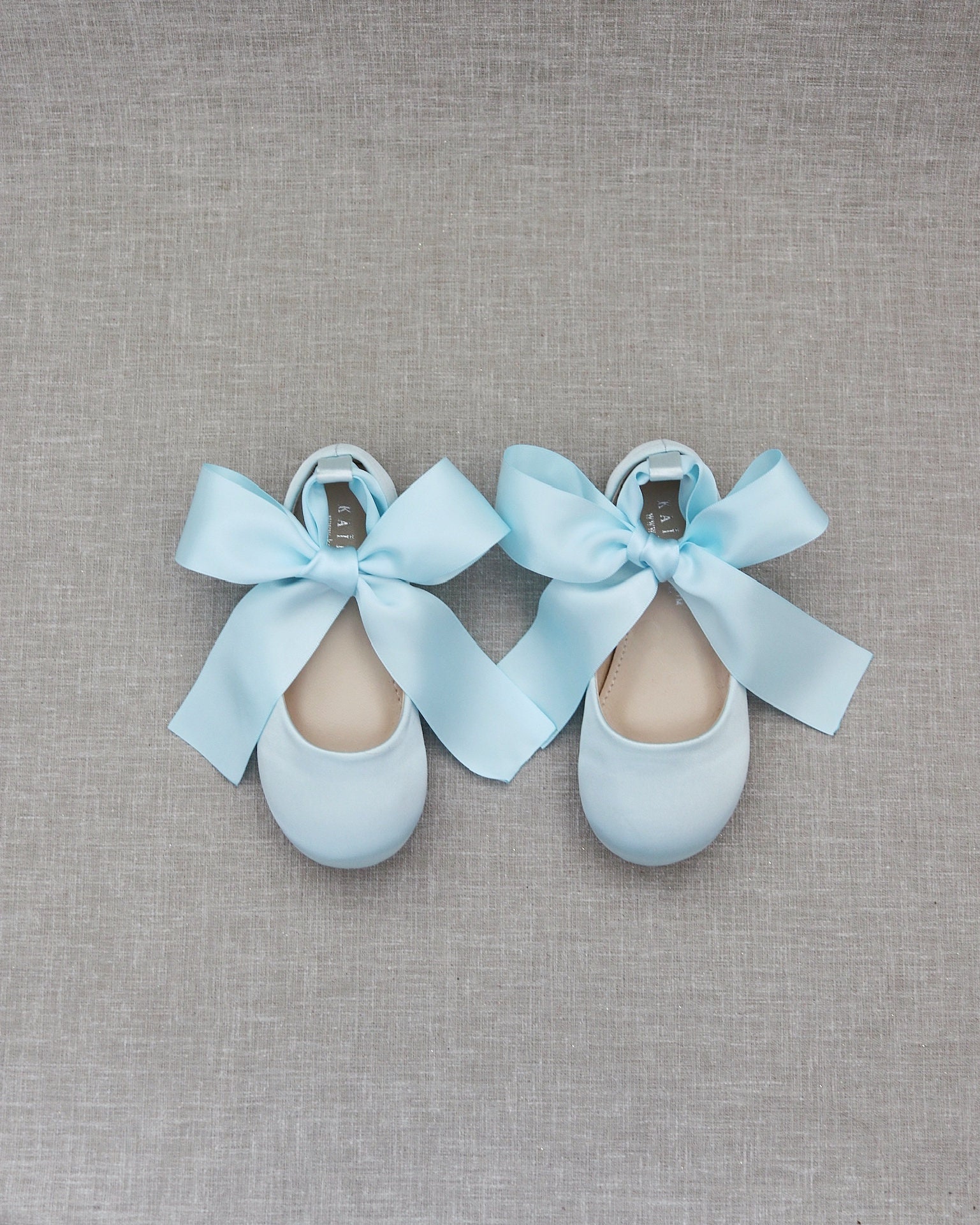 Kinderschuhe | Hellblaue Satin Schuhe mit Satin Knöchel Krawat...