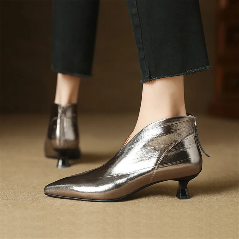 2024 neue Frühling Schaf Leder Damenschuhe spitzen Zehen Stiefel für Frauen prägnante...