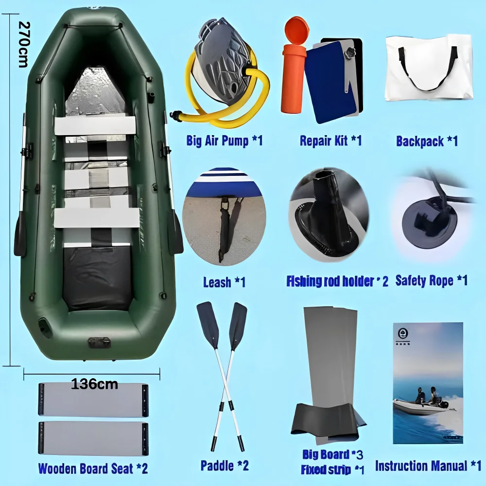 2,7 m Beiboot Kanu aufblasbares Fischerboot 4 Personen Rennboote und Surfkajak Tragbares IB-Wassersp...