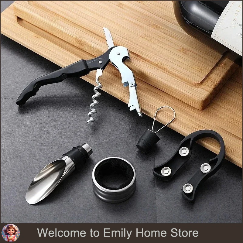 Rotwein-Flaschenöffner-Set, Weinkorken, Seepferdchen, Flaschenöffner, Tropfenring, Weinsto...