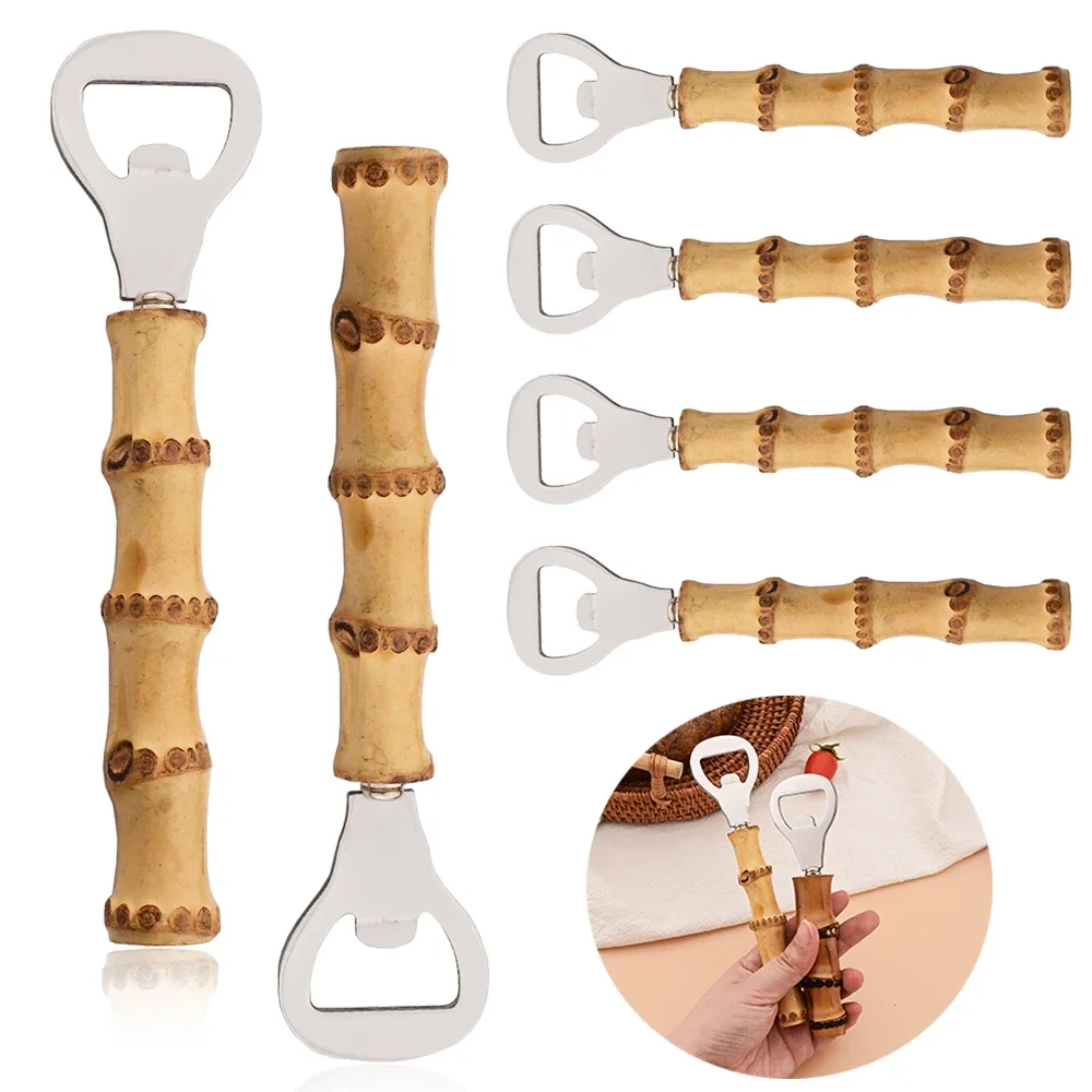 4/6 Stück Edelstahl-Bieröffner mit Bambusgriff, Barkeeper, Korkenzieher, Getränke&oum...