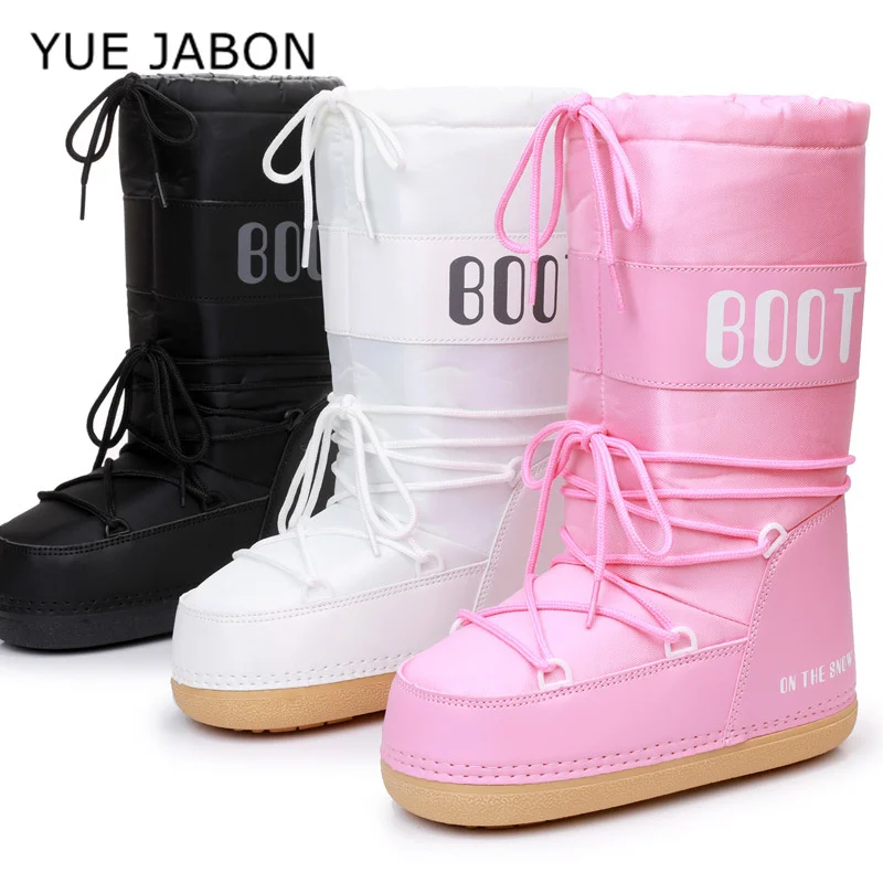 2026 neue Winter Schnee Stiefel Frauen Ski Stiefel Verdicken Baumwolle Spitze Up Mittlere Waden Plat...