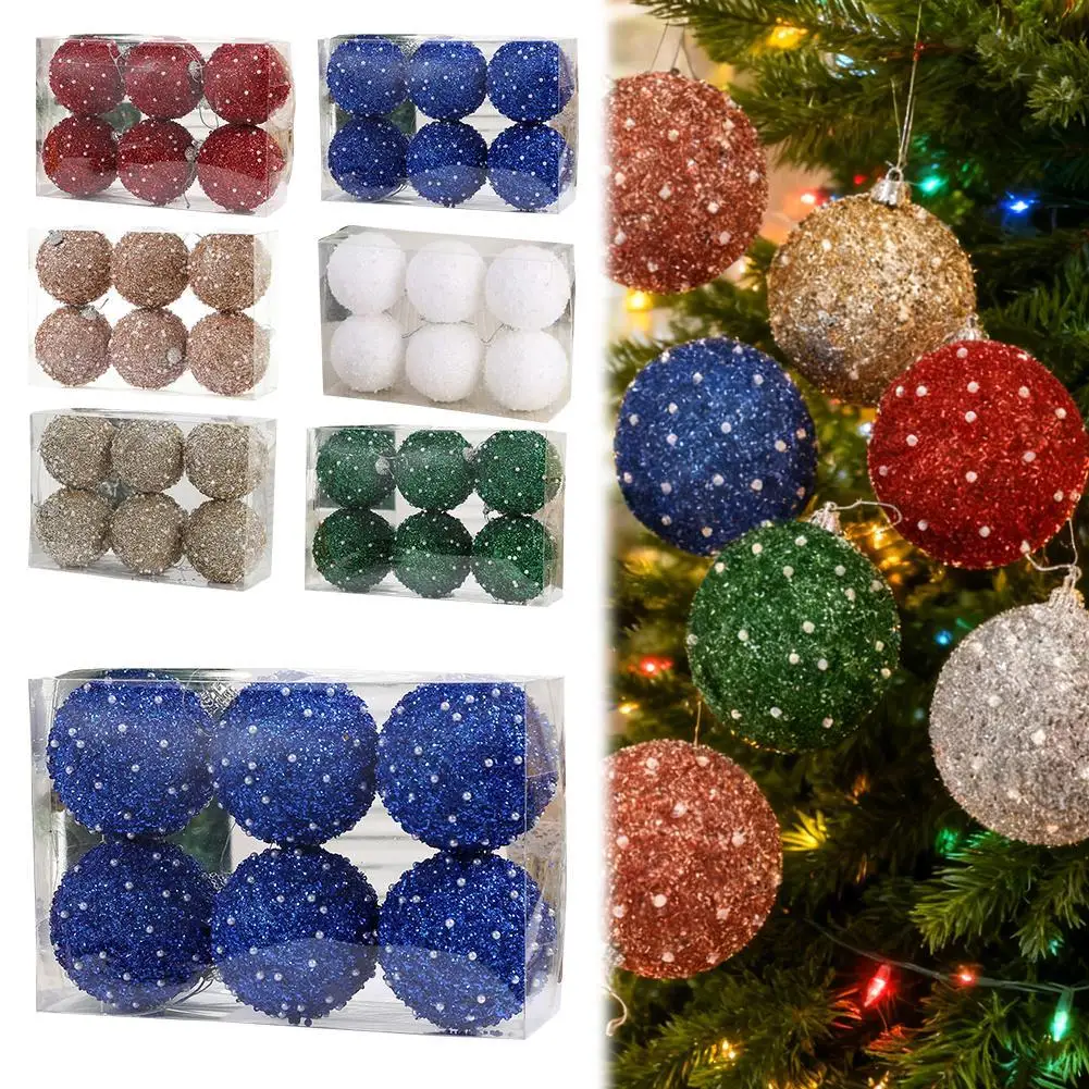 6 Stück Champagner-Gold-Glitzer-Weihnachtskugeln, 6 cm, Weihnachtsbaum-hängende funkelnde ...