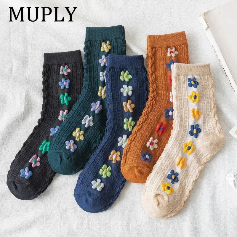 2025, neue Damensocken aus Baumwolle, klassischer Stil, Euramerican National Wild Flowers, Früh...