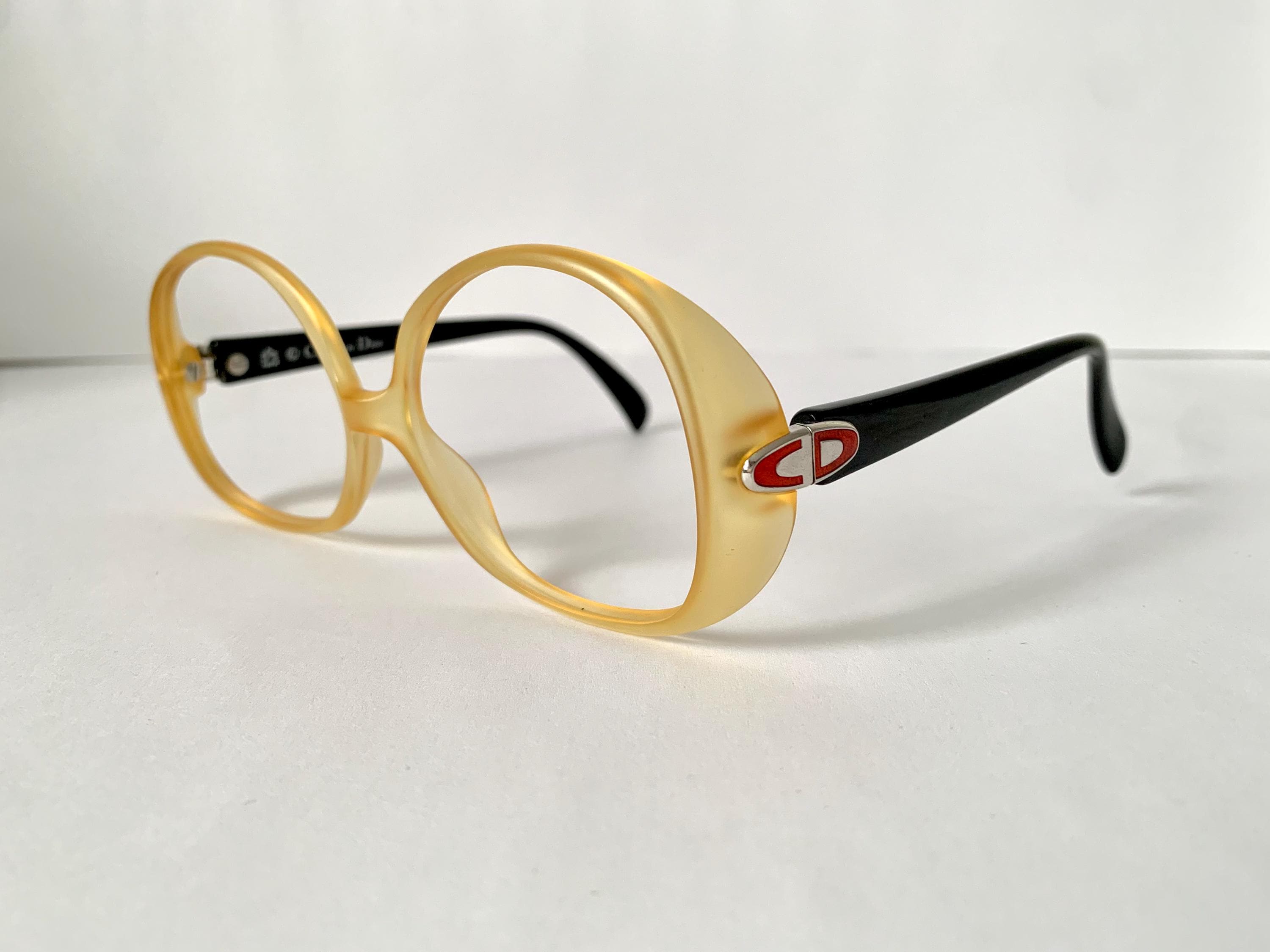 Christian Dior 80er Jahre Vintage Brille - gelb und schwarzer Rahme...