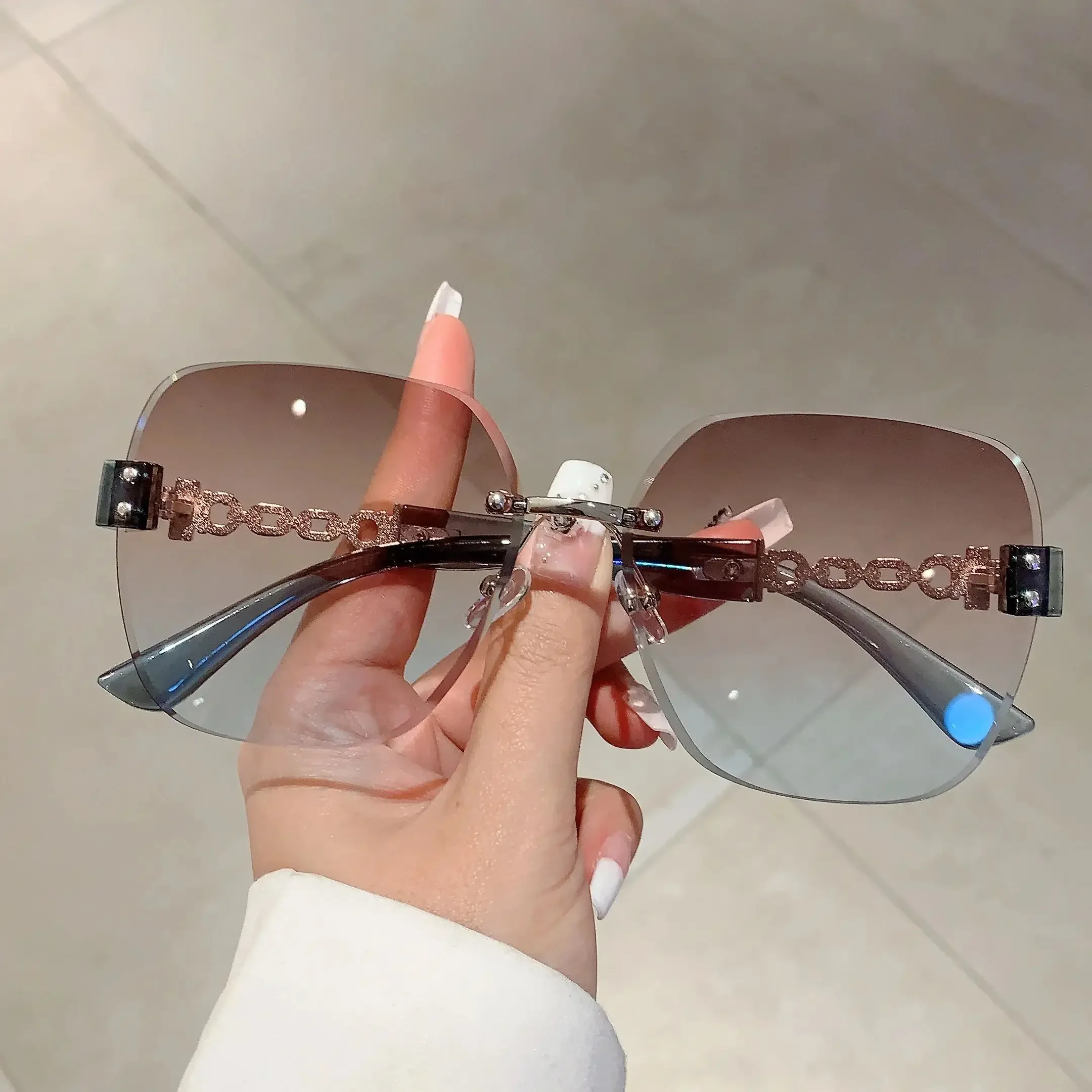 2023 Sonnenbrille Frauen Luxus randlose Vintage Mode Brille Lunette übergroße Sonnenbrill...