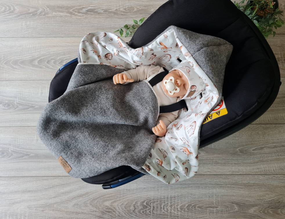 Kuschelige EINSCHLAGDECKE für alle gängigen Babyschalen mit 3-Punkt-Gurt * Weidekätzc...
