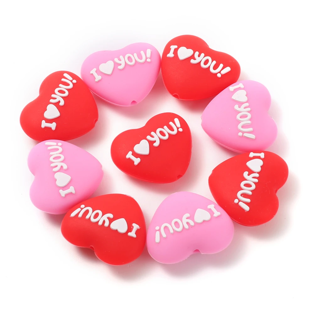 10 Stück Valentinstag Silikon Beißring Perlen 25 x 28 mm...
