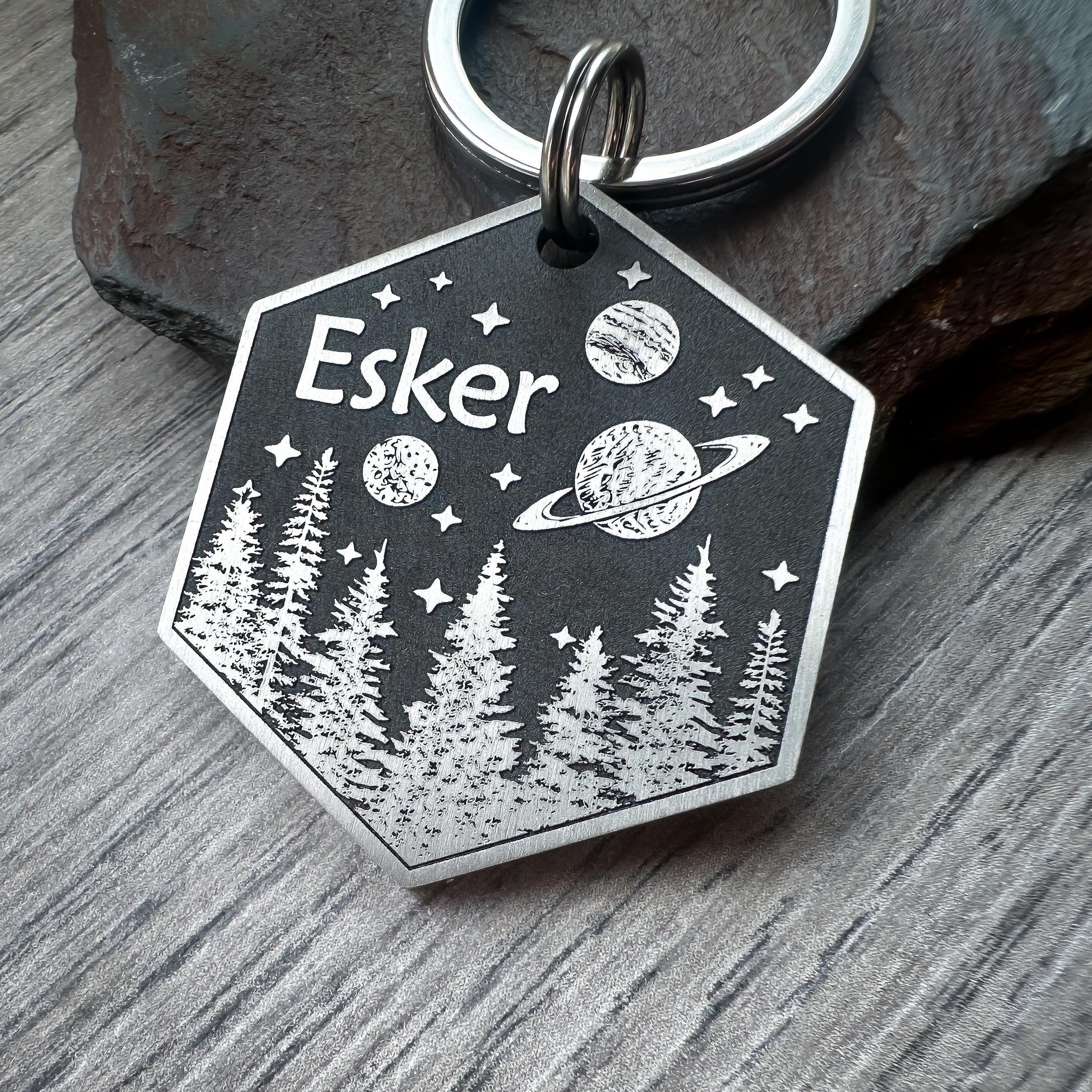 Dog Tag mit Gravur, Planeten Schlüsselanhänger, Sterne Sc...