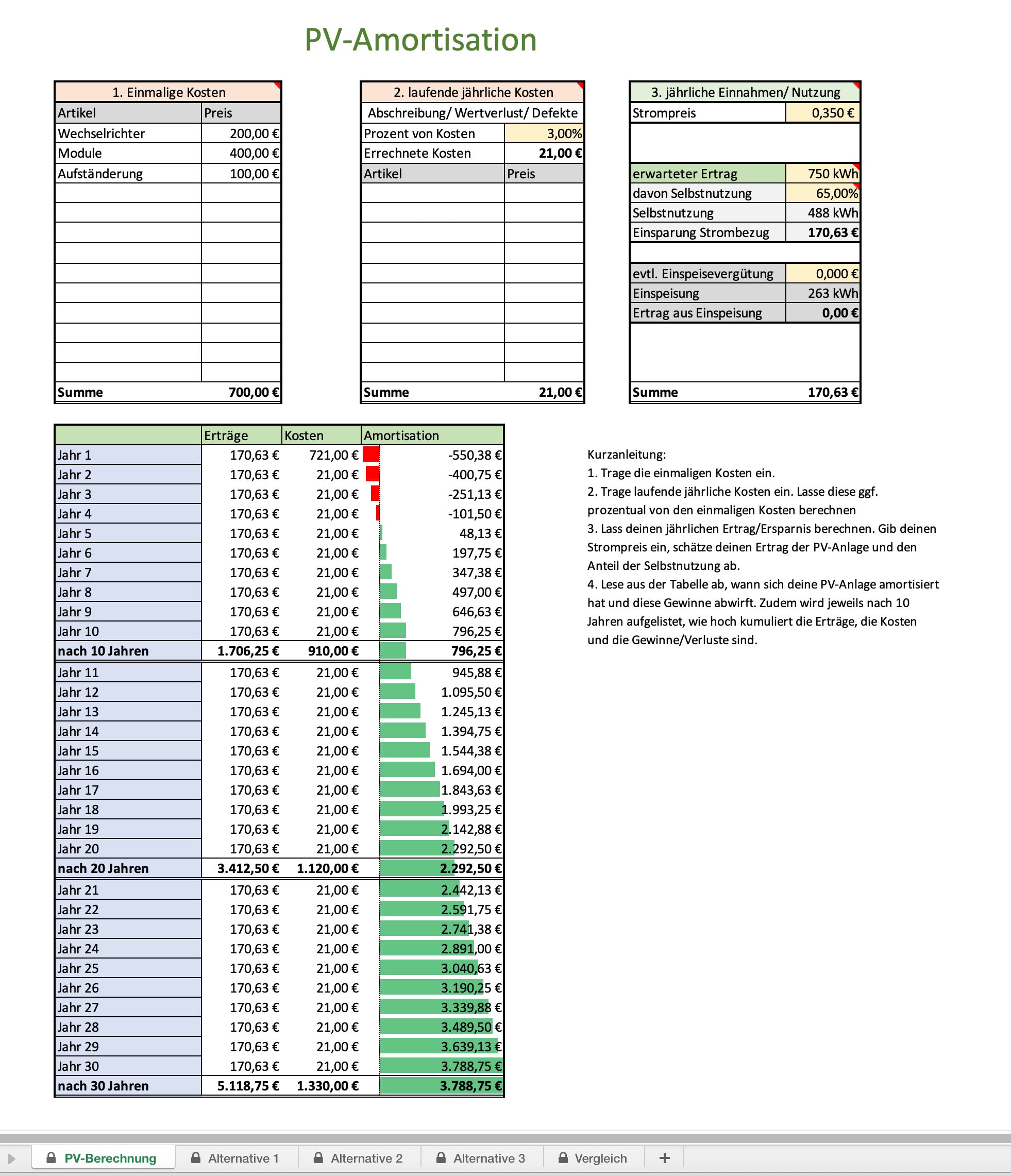 Balkonkraftwerk berechnen - Excel Tabelle zur Berechnung von Wirtsc...