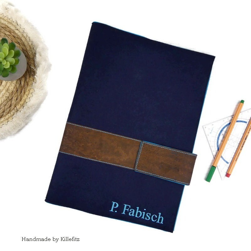 Dieser besondere Einband für einen Lehrerkalender im Format A4/A4 aus hochwertigem, dunkelblaue...