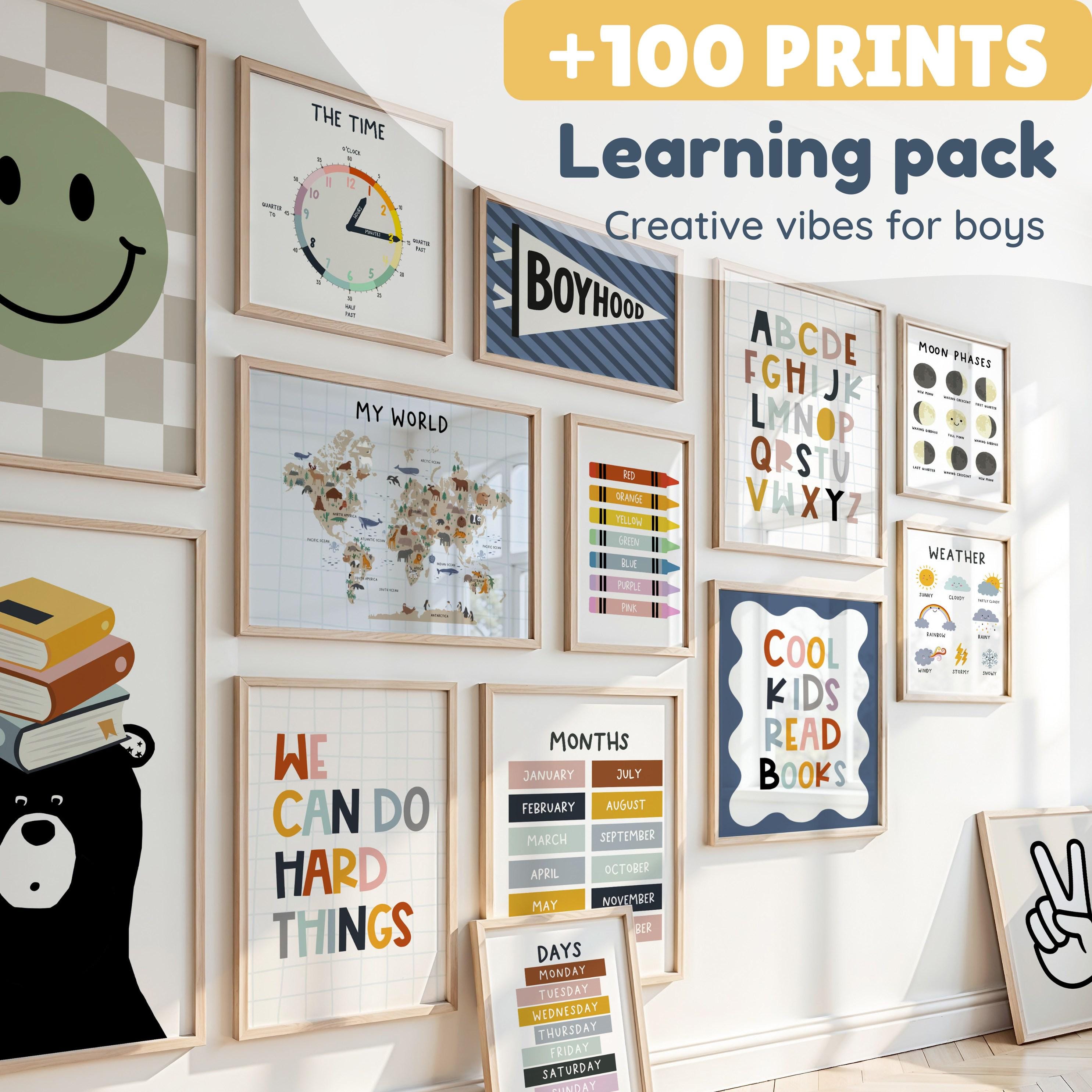 100 Lern- und Kreativprints für Jungen! Art Printables - perfekt für Kinderzimmer, Kinderz...