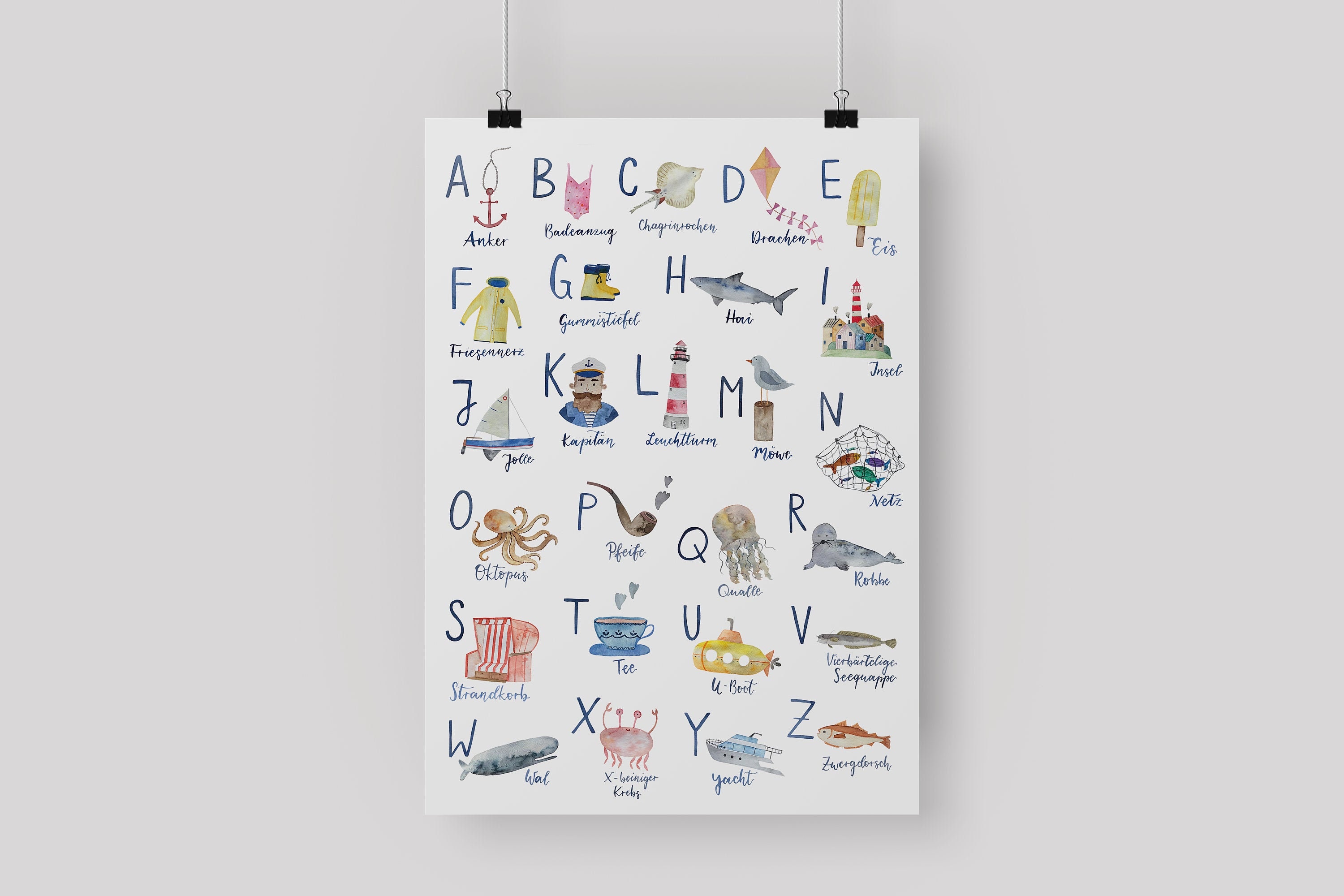 ABC-Poster Meer, Alphabet-Poster, A3 Poster Meer, Buchstaben Poster...