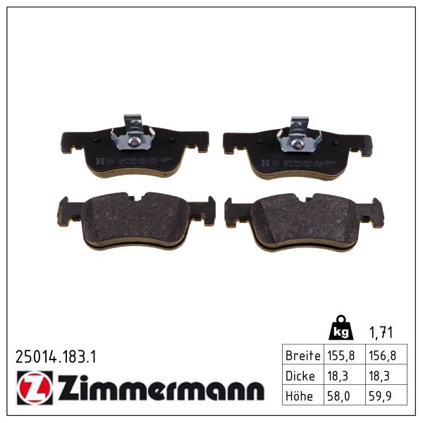 ZIMMERMANN Bremsbelagsatz, Scheibenbremse 25014.183.1 vorne rechts ...