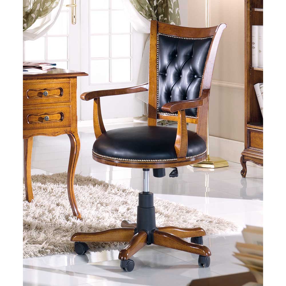 Italienischer Design Schreibtischstuhl in Nussbaumfarben Schwarz Kunstleder - Sitzbreite (in cm) : 5...