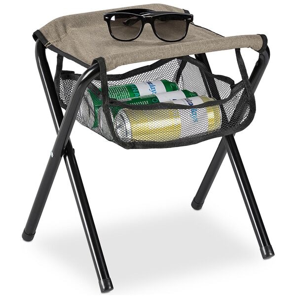 relaxdays Klapphocker bis 120 kg faltbar mit Netztasche Graun