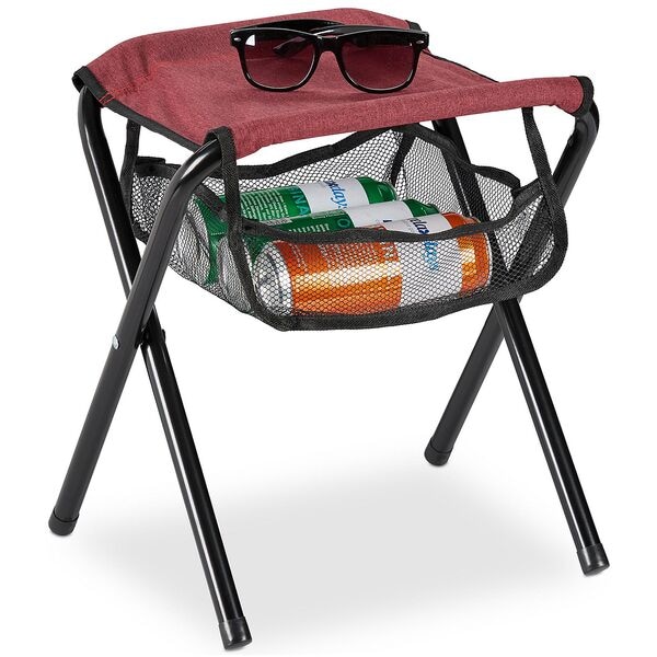 relaxdays Klapphocker bis 120 kg faltbar mit Netztasche rot