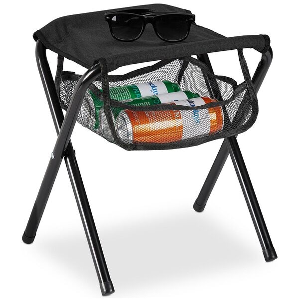 relaxdays Klapphocker bis 120 kg faltbar mit Netztasche schwarz