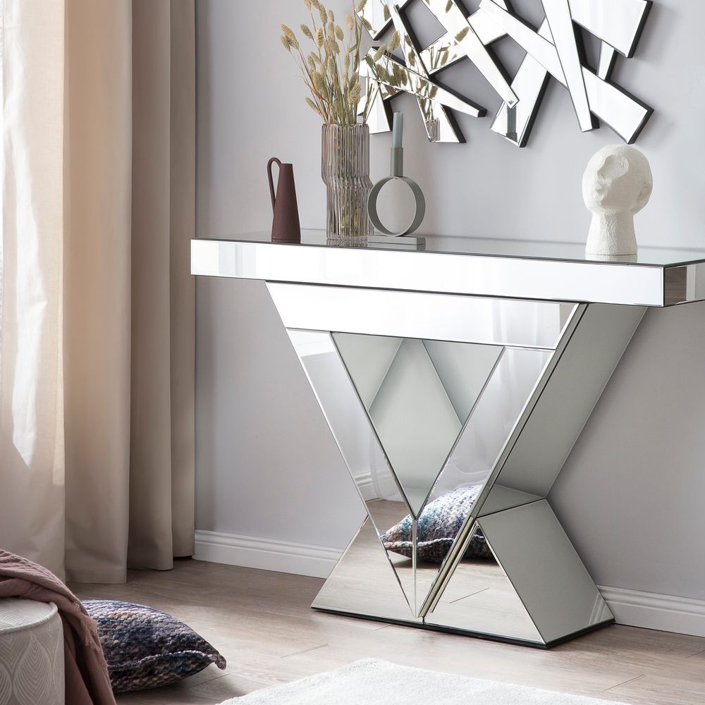 Der rechteckige Konsolentisch »Prisma« zieht jeden Blick auf sich.Die Tischplatte sowie ...