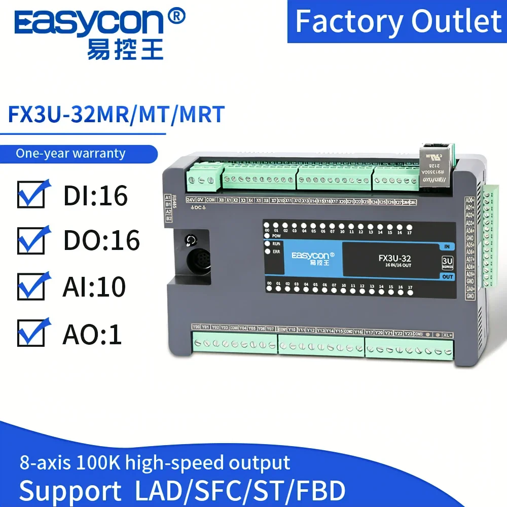 FX3U-32MT/mr/mrt 16di 16do 10 ai 1 ao ethernet plc controller arbei...
