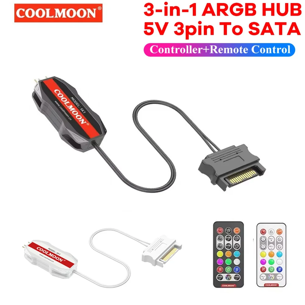 5V 3Pin ARGB Controller zu SATA Mini Controller HUB Adapter Control...