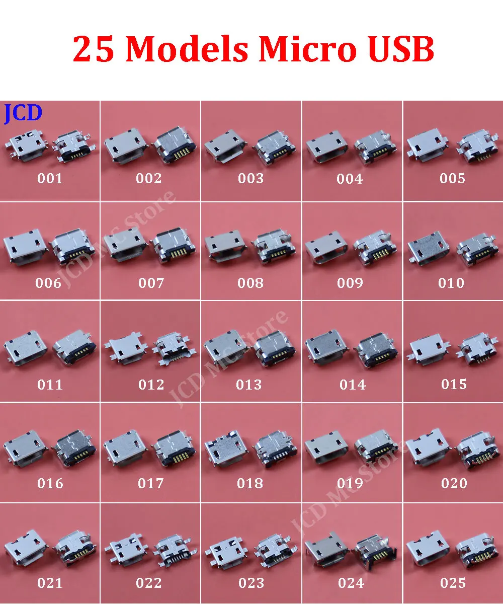 25 Modelle Micro USB 5 Pin Jack Buchse Ladeanschluss Anschluss f&uu...