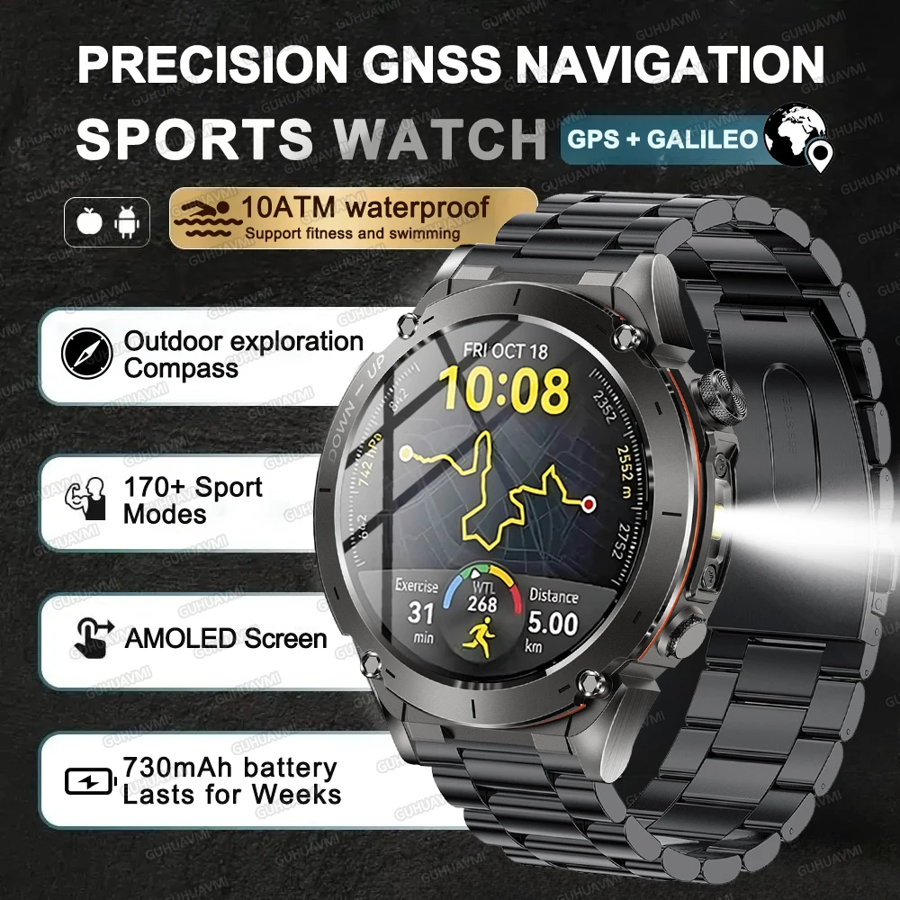 GPS Smart Watch Frauen Männer 1,43 Zoll AMOLED Display Unterstützung Kompass Galileo NAVIC...