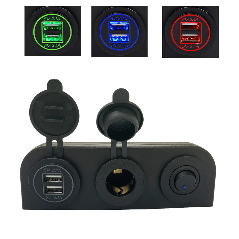 3 in 1 Zelt Typ Zigaretten anzünder Steckdose Dual USB Auto ladegerät Ports Schalter Knopf...