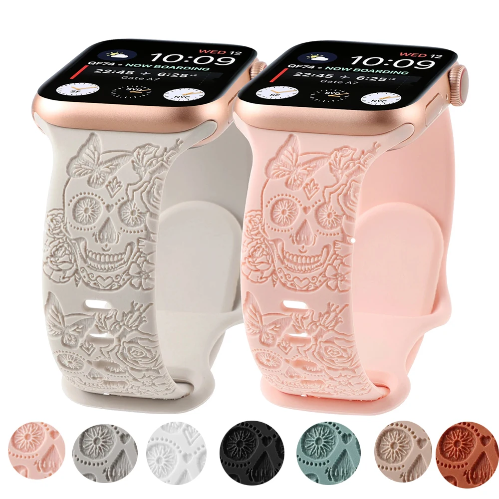 Armband für Apple Uhren armband 45mm 44mm 41mm 40mm 42mm 49mm Silikon Blumen gravur Armband Cor...