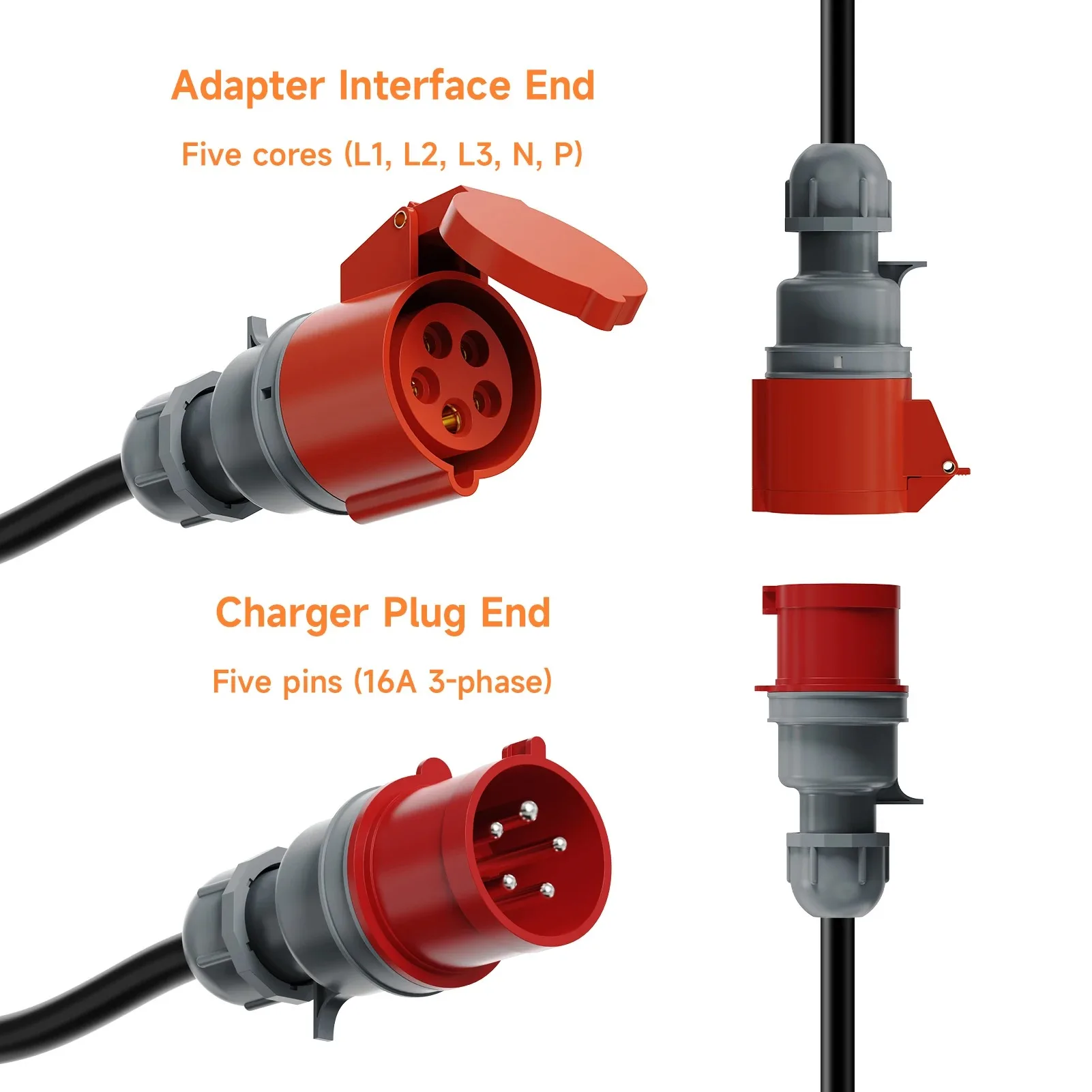 Khons EV-Ladegerät Schuko-Stecker auf CEE Roter Buchsenstecker 32A 3-Phasen-Adapter Blauer CEE ...