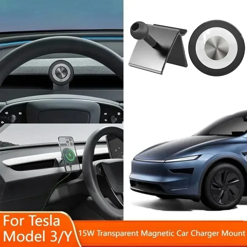15 W transparente magnetische Autoladegerät-Halterung für Tesla Model Y Juniper 2025+ 3 Hi...