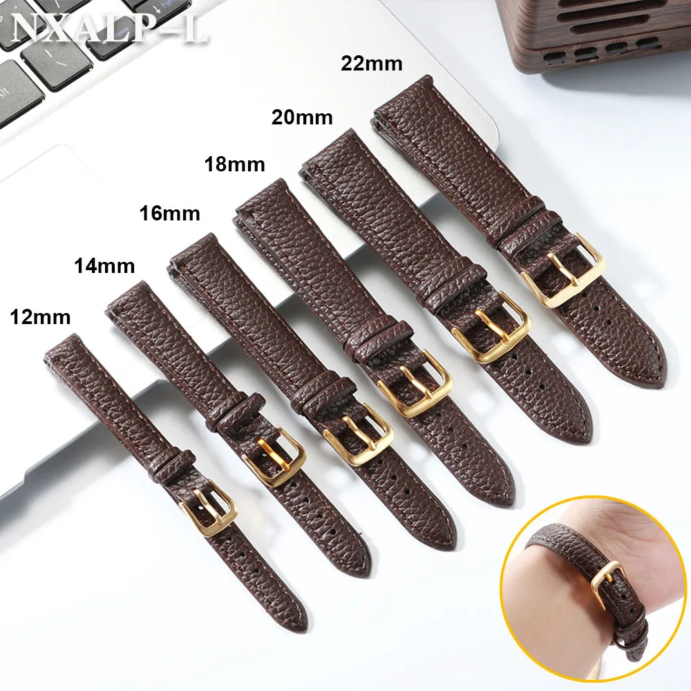 Ultradünnes Leder-Uhrenarmband, 12 mm, 14 mm, 16 mm, 18 mm, 20 mm, 22 mm, Litschi-Muster, PU-Le...