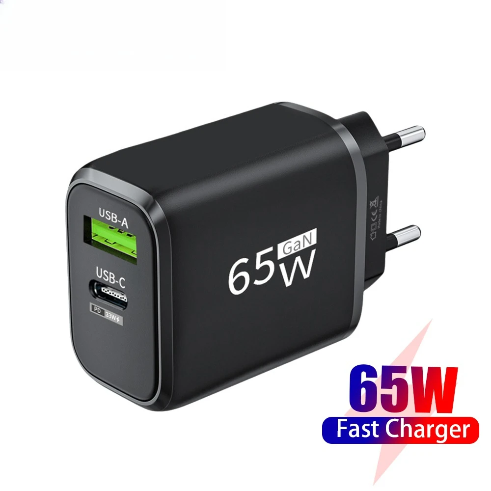2-Port 65W GaN-Ladegerät USB Typ C Schnellladegerät Handy-Ladeadapter für Samsung Xia...
