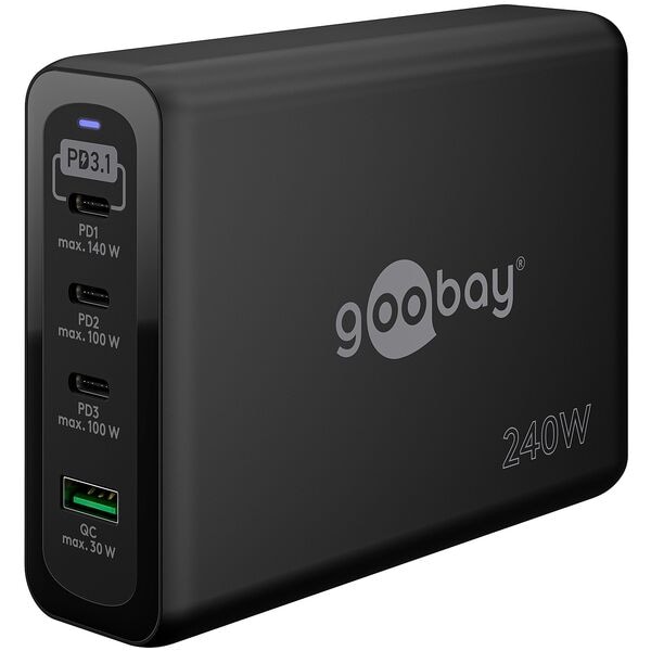 Ladeadapter USB A, 3 x USB C, Steckdose 1.0 m, Ladeleistung maximal: 240 W, Besonderheiten: Mit GaN-...