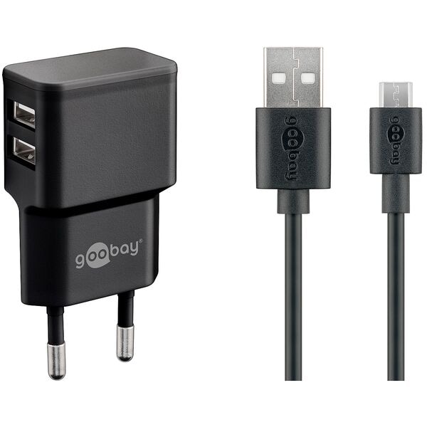 goobay Ladekabel mit Adapter 2 x USB A, Steckdose 1.0 m schwarz