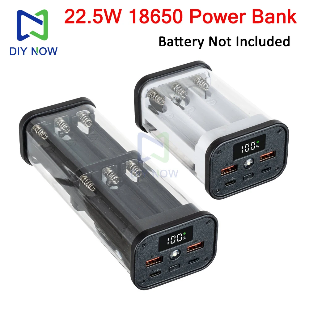 22,5 W vollständig transparentes Powerbank-Gehäuse, lötfrei, 6/12 x 18650-Batteriegeh...