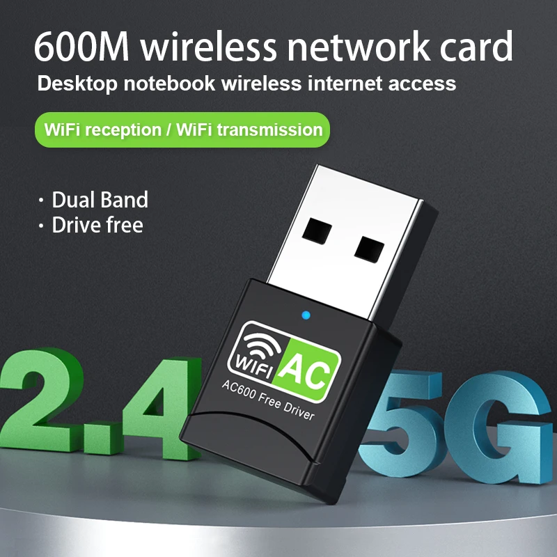 600M USB-WLAN-Adapter, kabelloser Ethernet-Dongle, 2,4 GHz, 5 GHz, Dualband, AC600, kostenloser Trei...