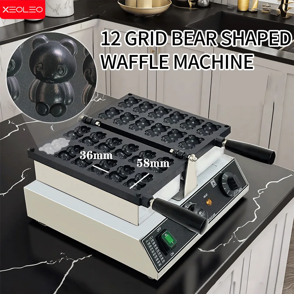 XEOLEO Elektrisches Waffeleisen in Bärenform, 1600 W, 12 Stück, Tierbären-Waffeleisen...