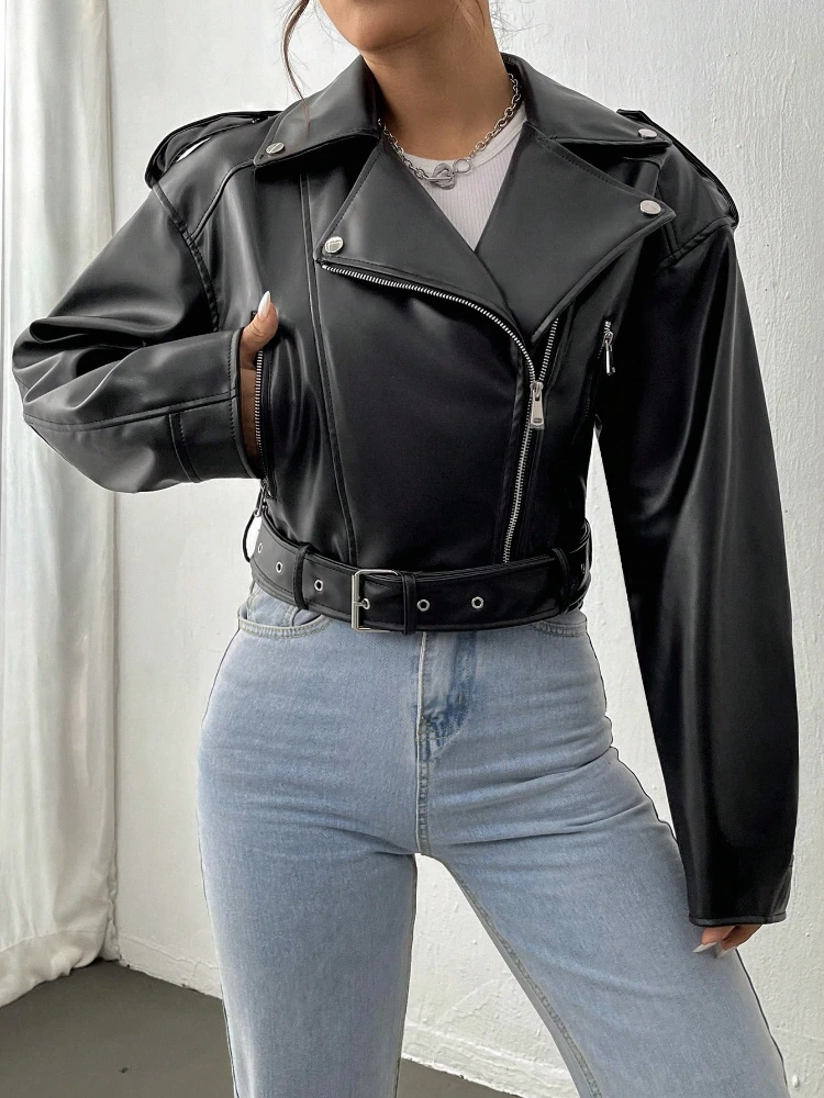 Neue frauen herbst faux lederjacken mäntel, frauen schwarz pu motorrad leder kleidung für ...