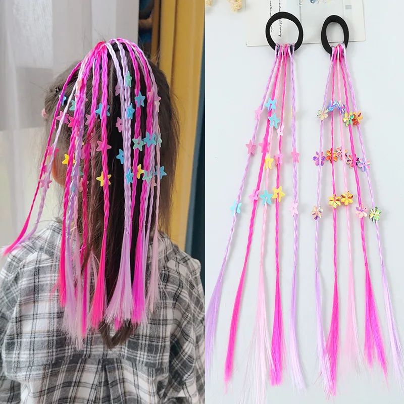 1pc schöne Mädchen farbige Pentagramm Perücken Pferdes chwanz Stirnbänder Gummib...