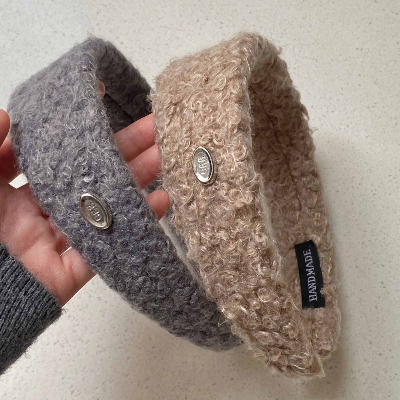 1PC Koreanischer japanischer INS-Stil High-End-Silber-Logo Teddy Kaschmir breiter Haarreifen, modisc...