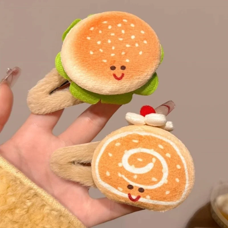 1-20PCS Nette Brot Cookie Haar Clips Schweizer Rolle Plüsch Lebensmittel Geformt Haarnadeln Lus...