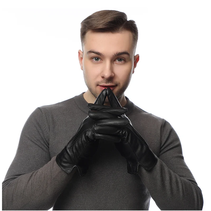 Winter Echte Schaffell Leder Handschuhe Männer Warme Wolle Gefüttert Voll Finger Touchscre...