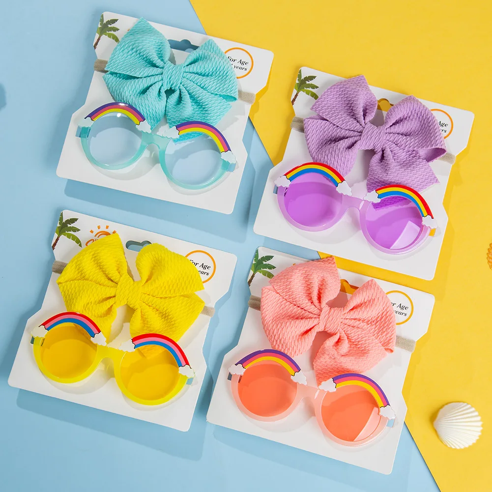 2 teile/satz Regenbogen Baby Sonnenbrille Kugel bogen elastische Nylon Haar bänder Kinder Junge...