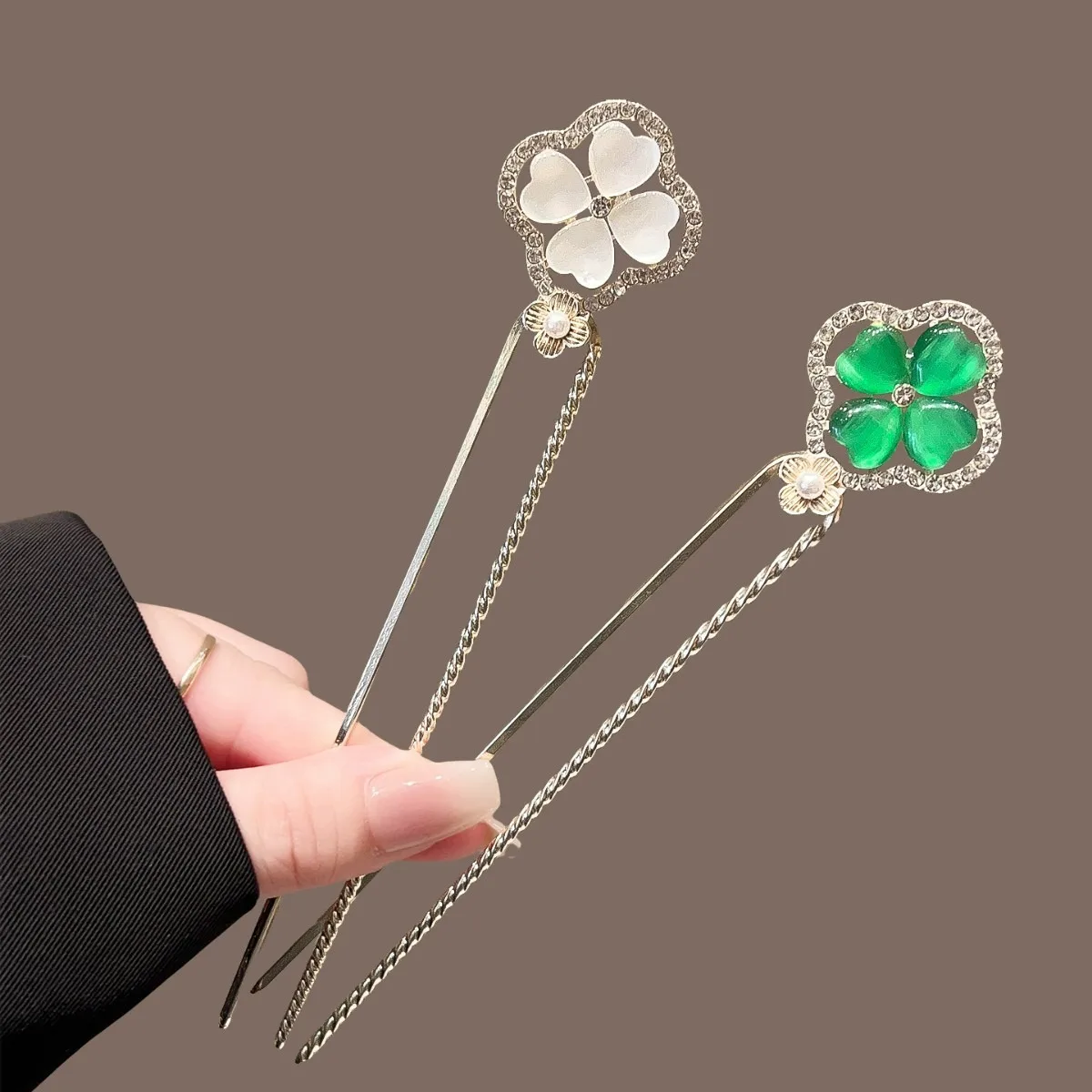 5 cm Temperament Opal Vierblättriges Kleeblatt Haarspange Elegante Damen Hinterkopf Halbgebunde...