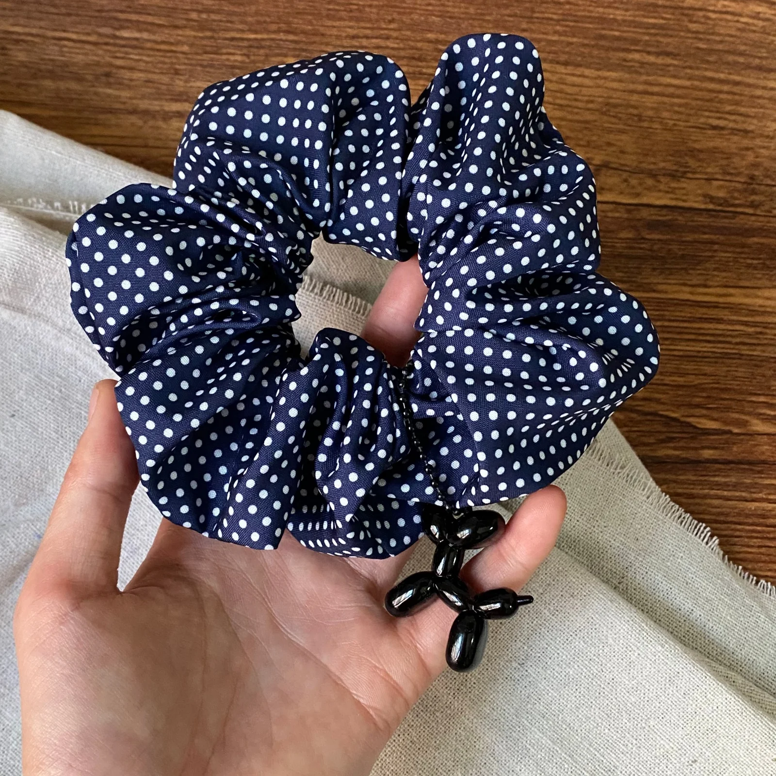 1 Stück marineblaues gepunktetes Haar-Accessoire mit niedlichem schwarzem Ballon-Hund-Charm f&u...